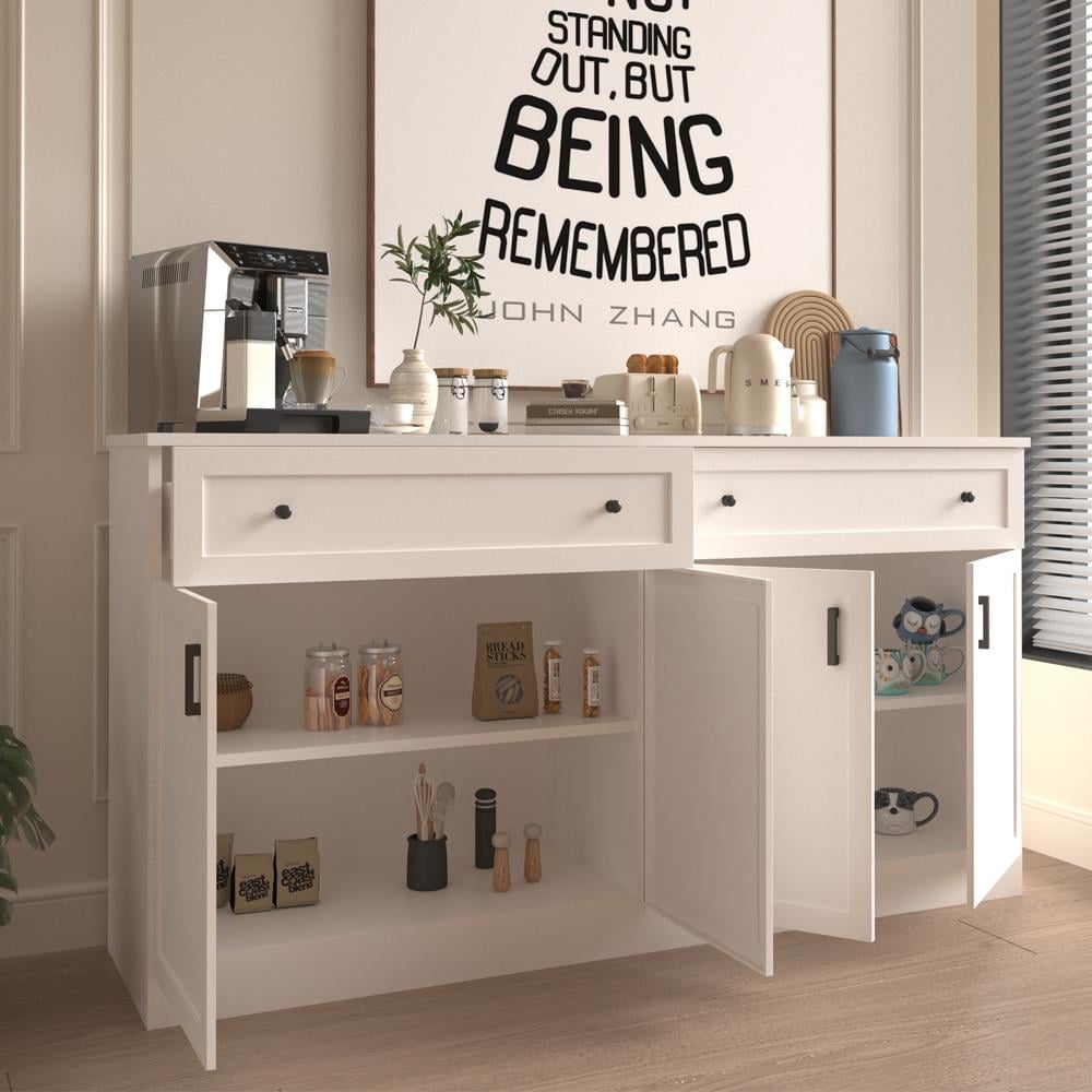 Geniş üst tabla alanı, alt raflar ve kapaklı dolap bölmeleri sayesinde tüm kahve hazırlık gereçlerinizi düzenli bir şekilde muhafaza etmenizi sağlar.