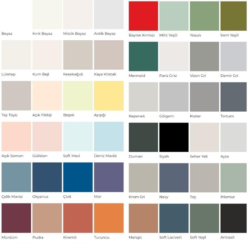 0,50 litresi ile uygulama şekli ve zemine bağlı olarak 8 - 10 m² alan tek boyanır.
