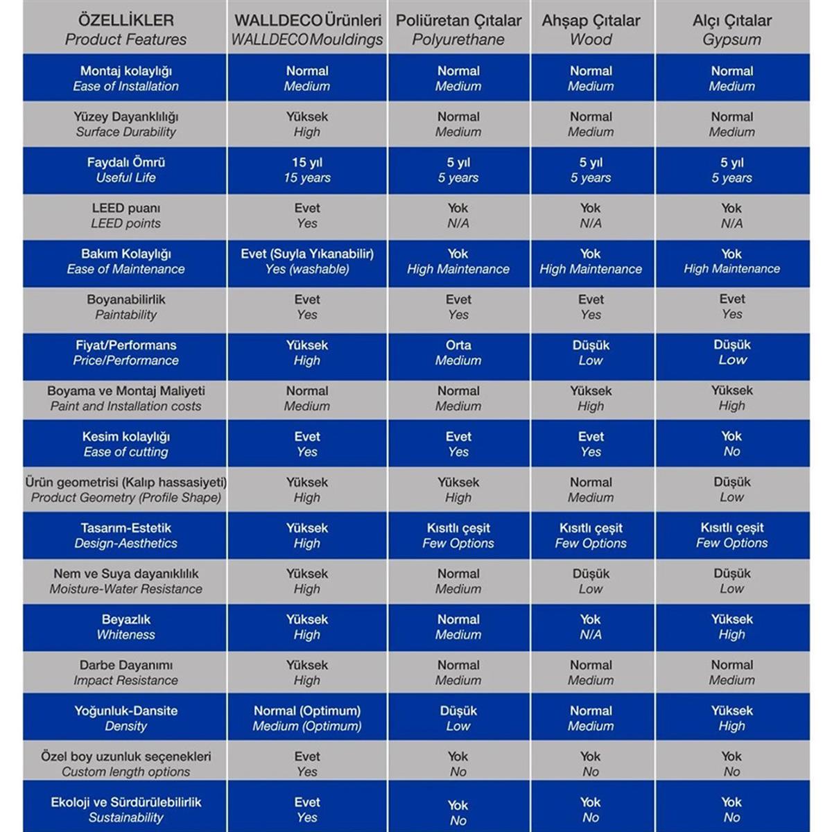 Özel içeriği sayesinde boyutsal stabilite ve optimum yoğunluğu sayesinde tüm diğer alternatiflere karşı açık ara en iyi çözümdür.