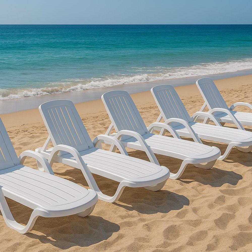 Plastik şezlonglar, sağlam, yüksek kaliteli, dayanıklı dış mekan mobilyaları üretiminde sentetik bir maddedir. Maliyeti, sağladığı lüks, konfor ve