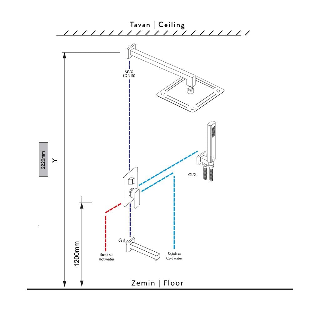 - 3 Yönlü Yönlendirici: Tepe duş, el duşu ve alt su çıkışı arasında geçişler kumanda paneli üzerinden yapılır.
