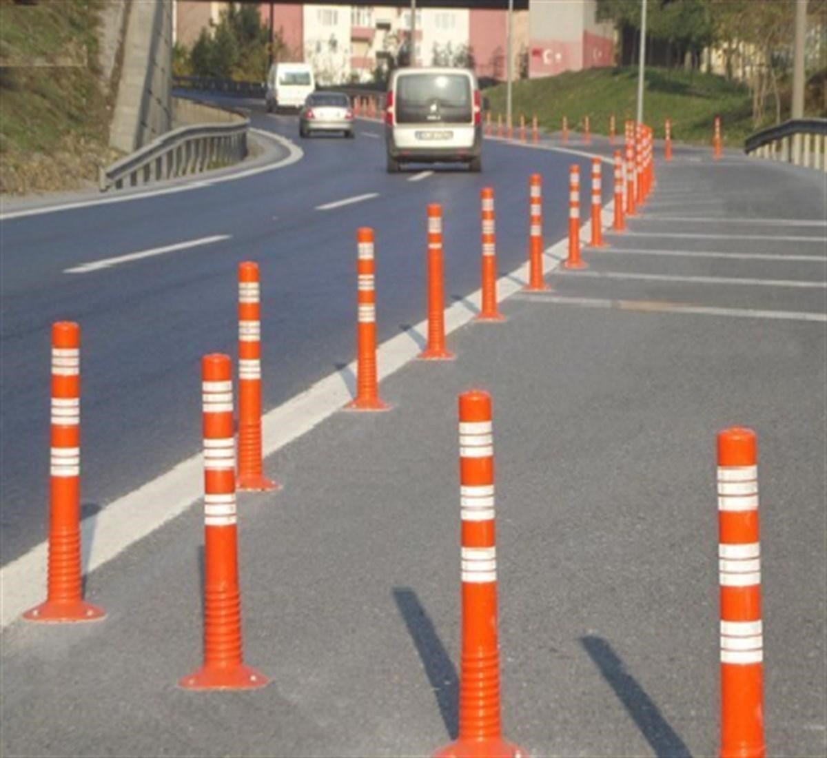Esnek delinatörlerin üretiminde kullanılan, darbelere karşı özel olarak güçlendirilmiş, doğal hava şartlarına (-20 +60) dayanıklı hammadde sebebiyle defalarca çarpılmaya dayanıklıdır. Araç ve yayalara zarar vermez.