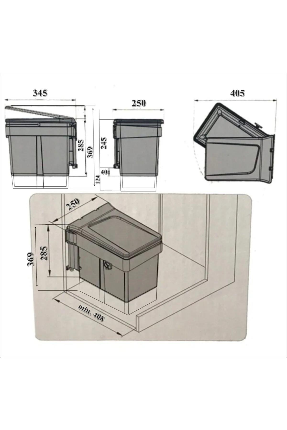 Dolap içi çöp kovası genellikle standart mutfak alt dolap kapaklarına monte edilecek şekilde tasarlanır. 15 lt kapasiteli bu model, 40 cm ve üzeri genişlikteki kapaklı dolaplarda rahatlıkla kullanılabilir. Antrasit çöp kovası modern mutfak tasarımlarına görsel uyum sağlar ve farklı kaplama malzemeleriyle bütünlük oluşturur. Kurulumu kolaydır, genellikle birkaç vida yardımıyla monte edilir.