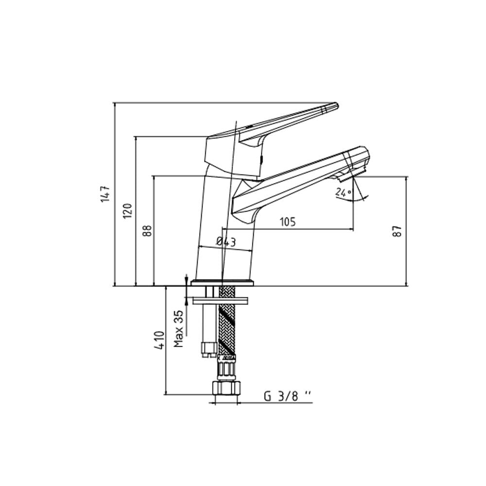 - Çıkış ucu yüksekliği 87 mm’dir.