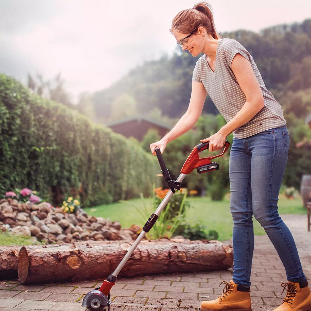 Einhell GC-CC 18 Li Kit, güçlü performansı, ergonomik yapısı ve kablosuz kullanım avantajı ile bahçe yolları ve fayans derzleri için pratik bir temizlik çözümü sunar.