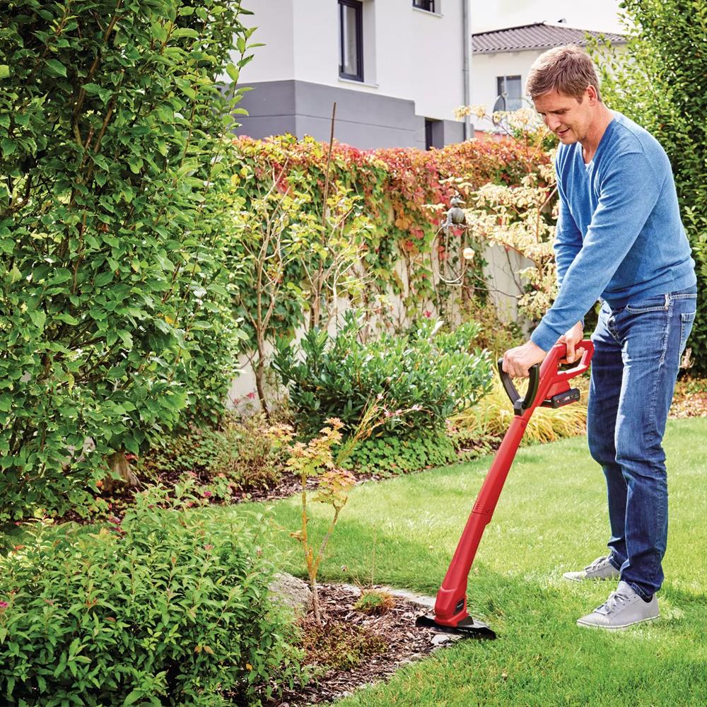Einhell GE-CT 18/24 Li P Kit, hafif yapısı, kablosuz özgürlüğü ve ergonomik tasarımıyla küçük ve orta büyüklükteki bahçelerde pratik kullanım sağlayan ideal bir kenar kesme