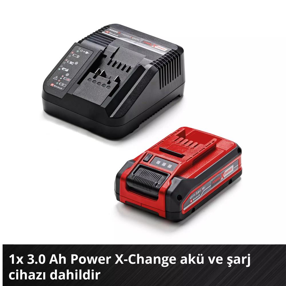 cihaz, kablosuz kullanımı sayesinde hareket özgürlüğü sağlar. Power X-Change akü sistemiyle diğer Einhell ürünleriyle de uyumludur.