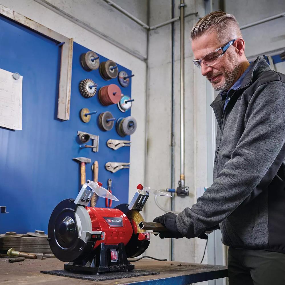 Einhell TC-BG 150 B taş motoru, bıçak, kesici aletler, metal parçalar, tornavida uçları ve benzeri malzemelerin bilenmesi, taşlanması ve şekillendirilmesi için idealdir. Atölyelerde,