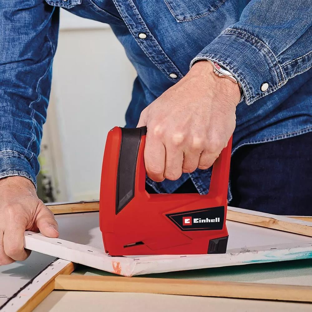 Einhell TC-CT 36 Li akülü zımba, özellikle ahşap, plastik, kumaş, deri ve benzeri malzemelerde zımbalama işlemleri için idealdir. Mobilya yapımı, dekorasyon, döşeme işleri, PVC