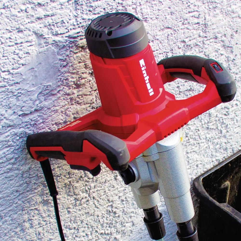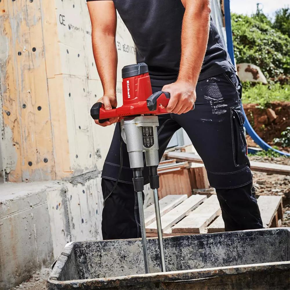 Einhell TE-MX 1600-2 CE Twin, güçlü motoru ve çift karıştırma mekanizması ile boya, harç, sıva, yapıştırıcı ve diğer sıvı/yoğun malzemeleri kolayca karıştırmak için tasarlanmış bir