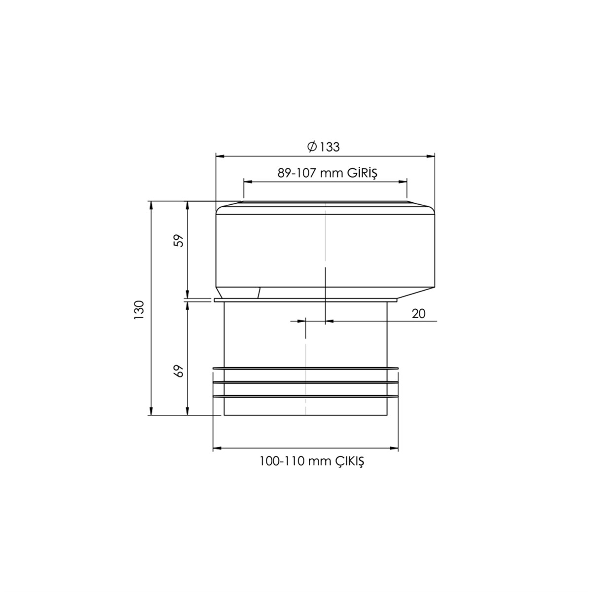 Alttan çıkışlı klozetlerde pis su çıkışlarını tesisata bağlamak için kullanılır. Klozette 20mm. eksen kaçırma sağlar.