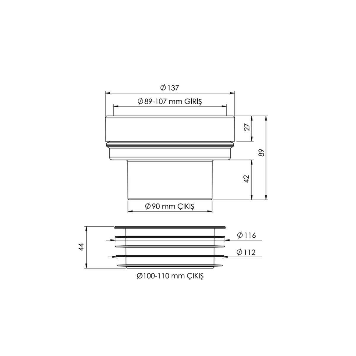 Alttan çıkışlı klozetlerde pis su çıkışlarını tesisata bağlamak için kullanılır.