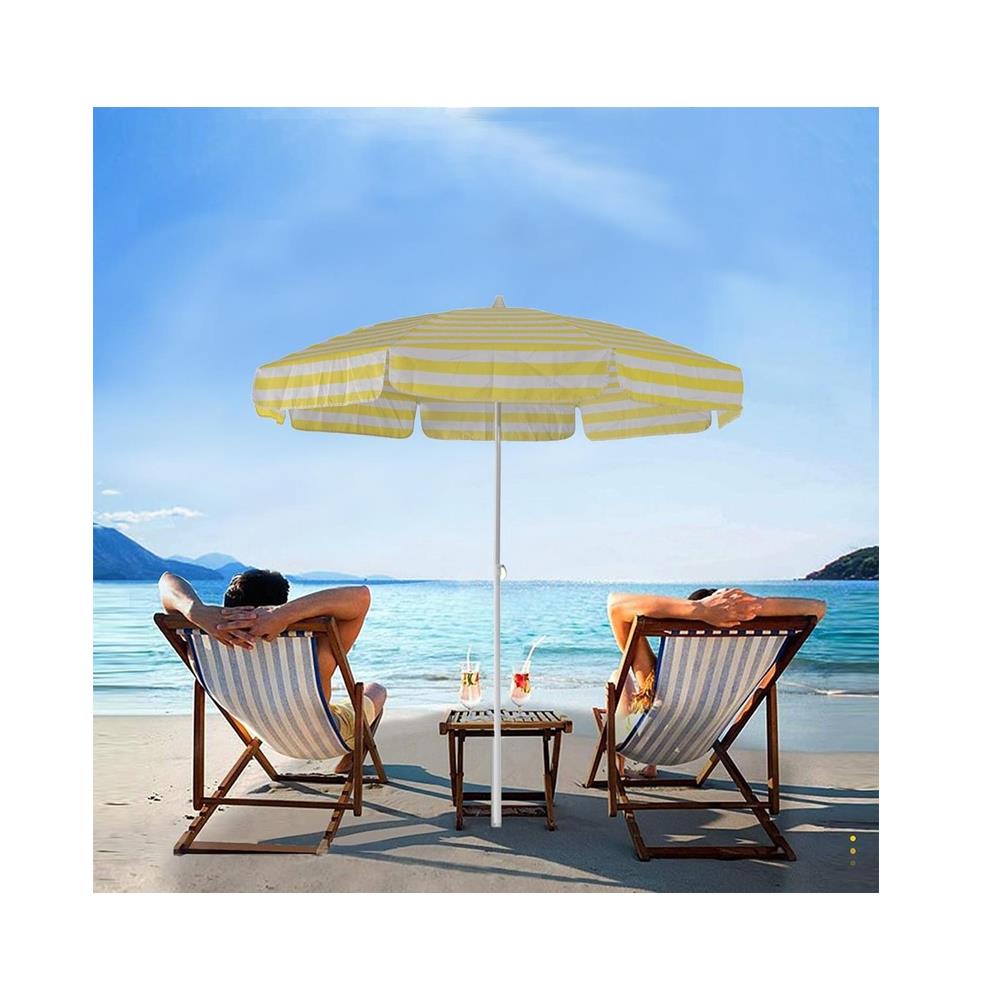 Exent L207 Plaj Şemsiyesi 200 Cm 8 Telli Eğilebilir Sarı-Beyaz