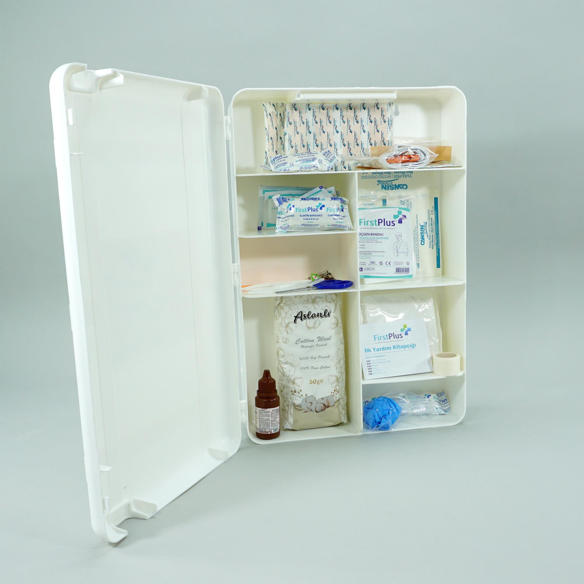 - İlk yardım ürünleri sert, sağlam ve dayanıklı ABS plastik malzemeden üretilmiş bir dolap içindedir.