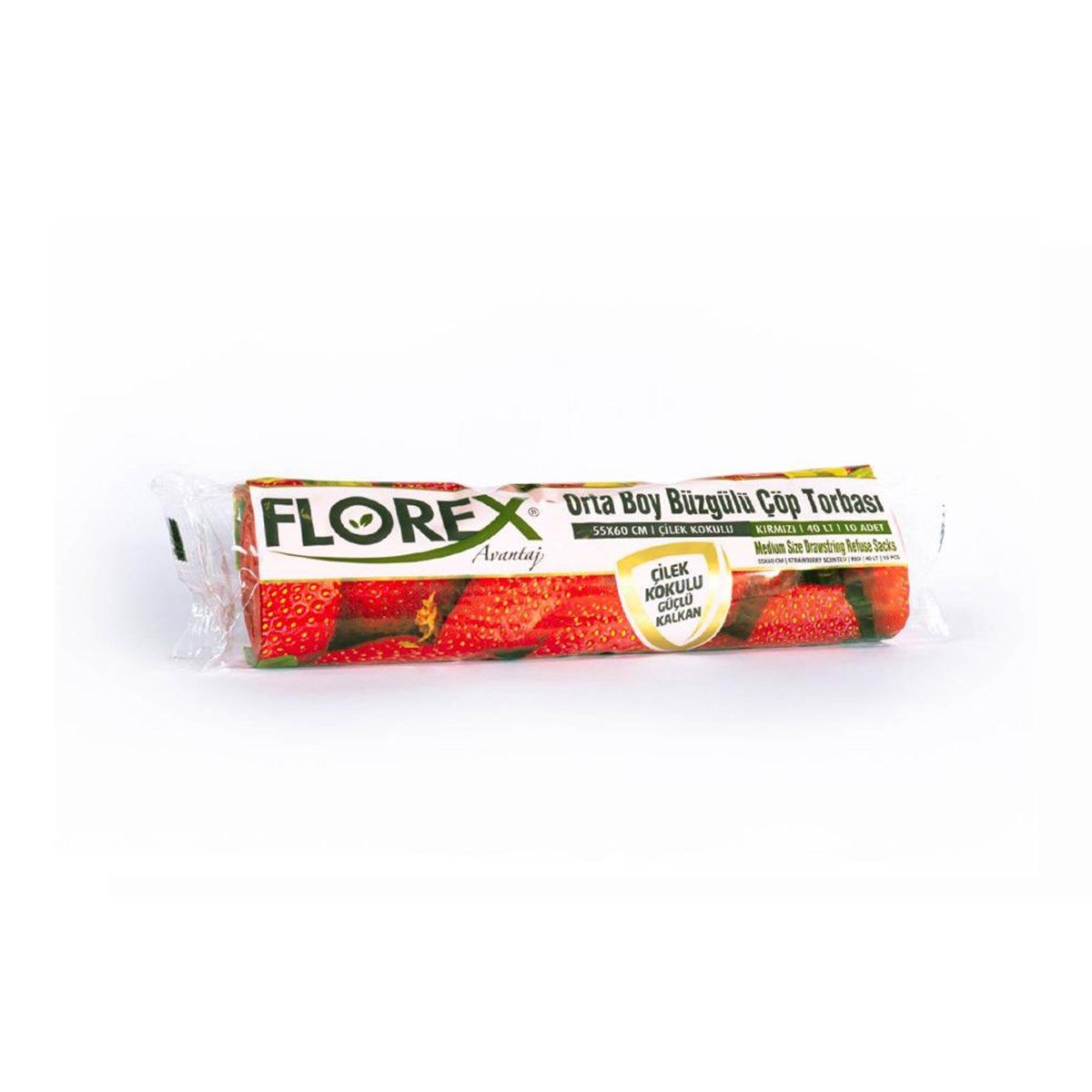 Florex 402 Çilek Kokulu Büzgülü Orta Boy Çöp Torbası 55X60Cm 25 Rulo (1 Rulo 10 Adet)