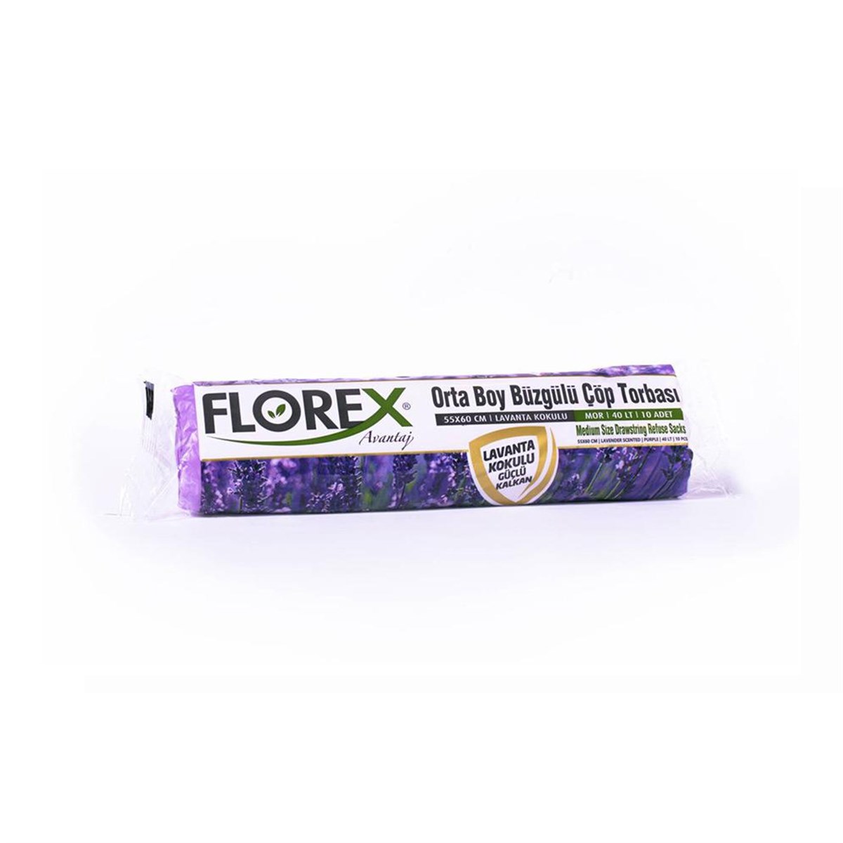 Florex 403 Lavanta Kokulu Büzgülü Orta Boy Çöp Torbası 55X60Cm 25 Rulo (1 Rulo 10 Adet)