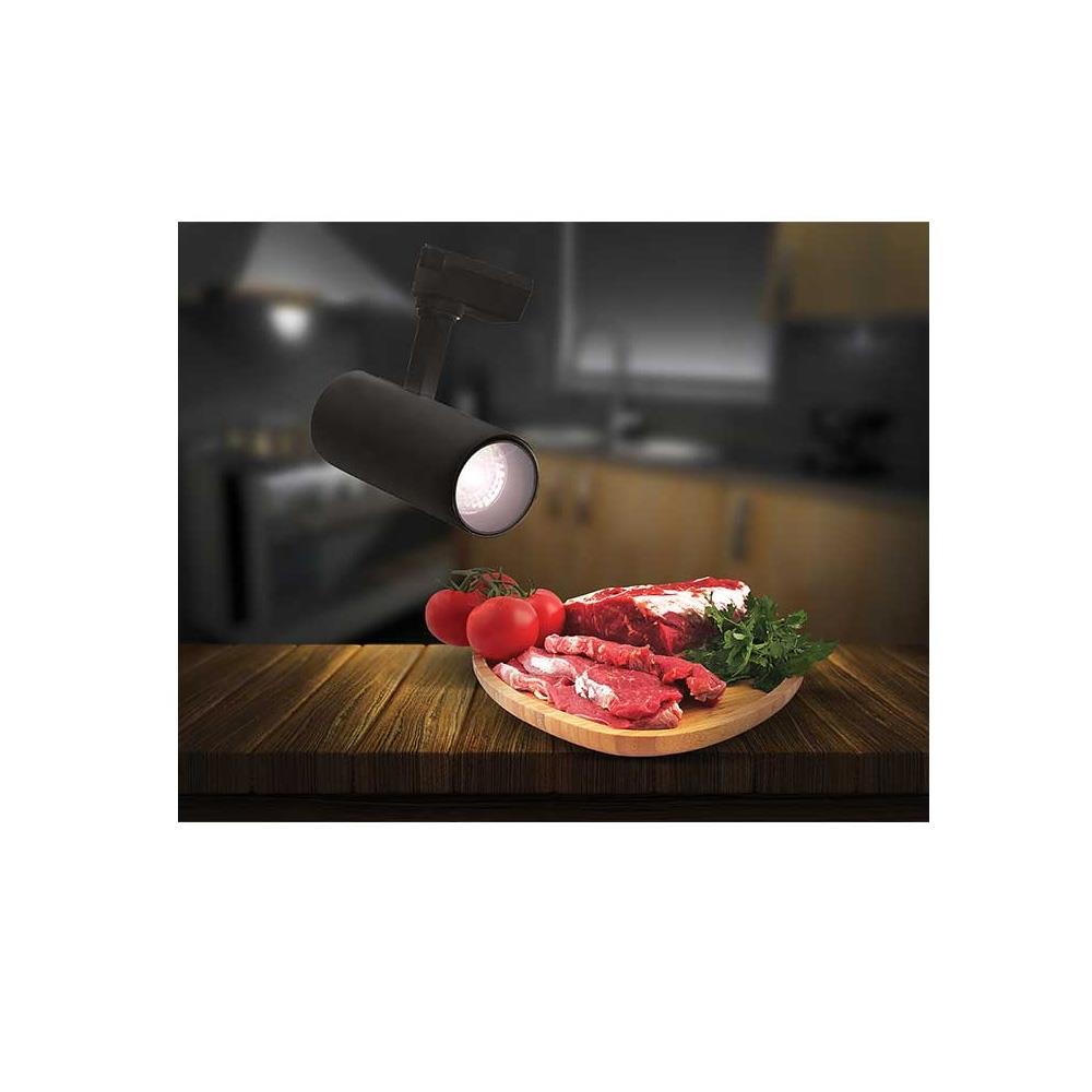 2700 lümende güçlü ışık yayan ray spot armatür, CRI>80 renk verimliliği sunar.