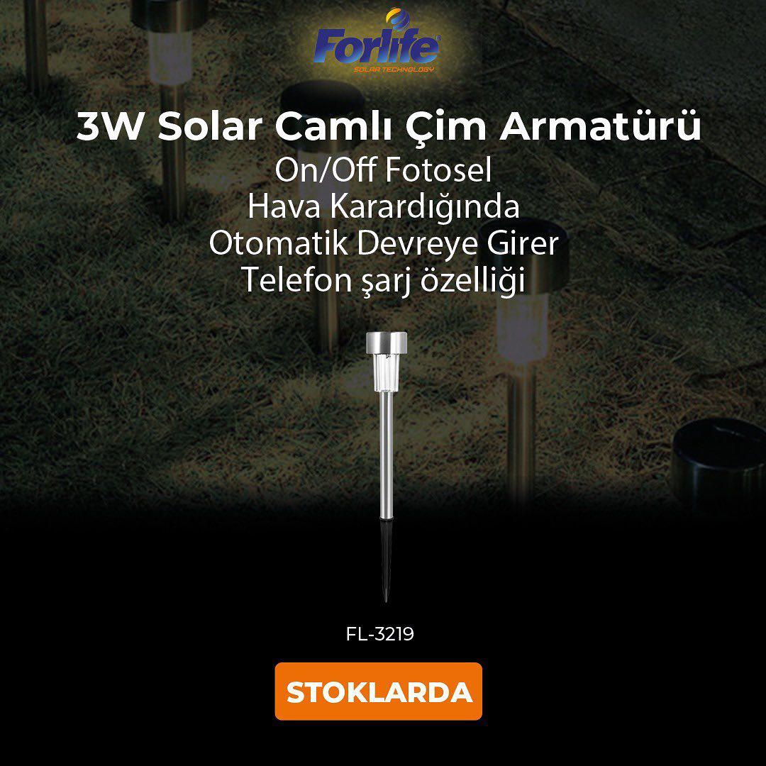 Forlife Solar Camlı Çim Armatürü 3W 3200k Gün Işığı FL-3219