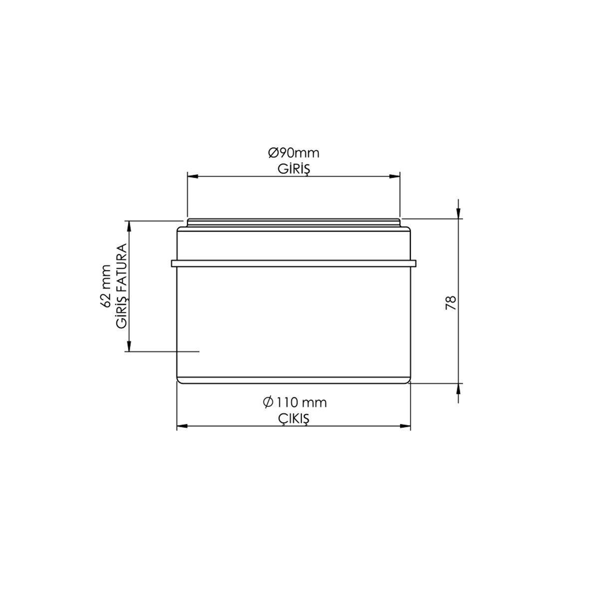 Ø90 gömme rezervuar pis su çıkış dirseğini Ø110 pis su çıkışına bağlamak için kullanılır.