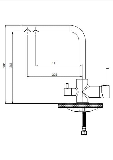• Arıtma çıkışı çıkış ucu uzunluğu 171 mm Şebeke çıkışı çıkış ucu uzunluğu 202
