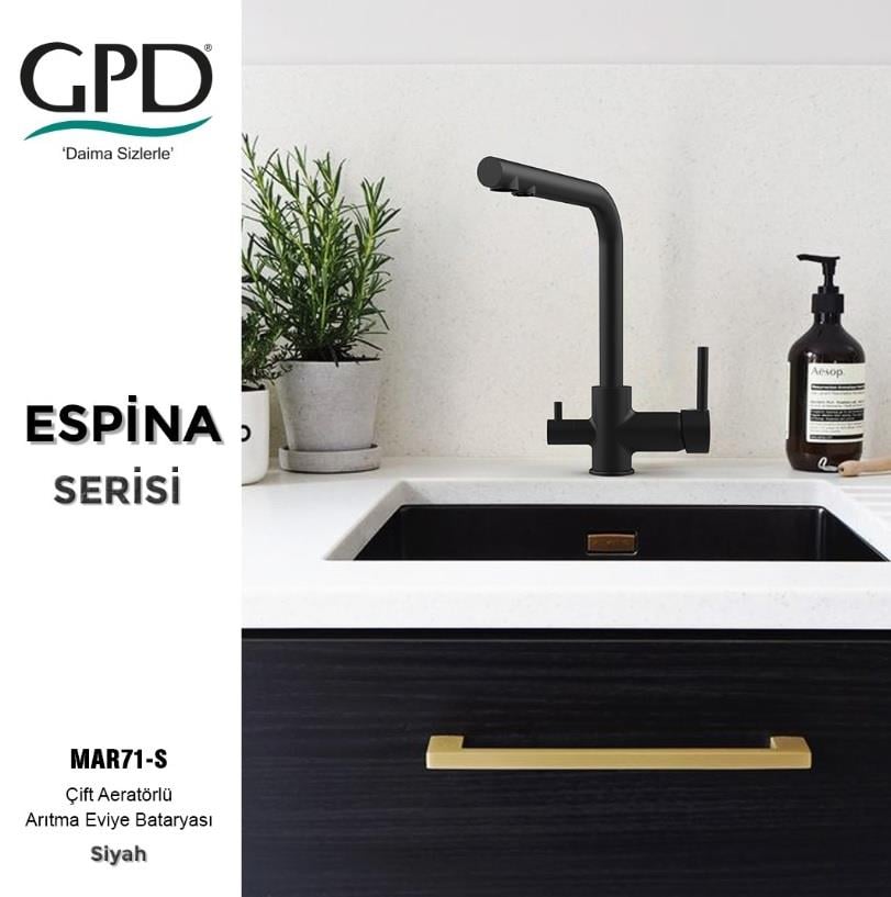 GPD Espina Arıtma Çıkışlı Eviye Bataryası Siyah Mar71-s
