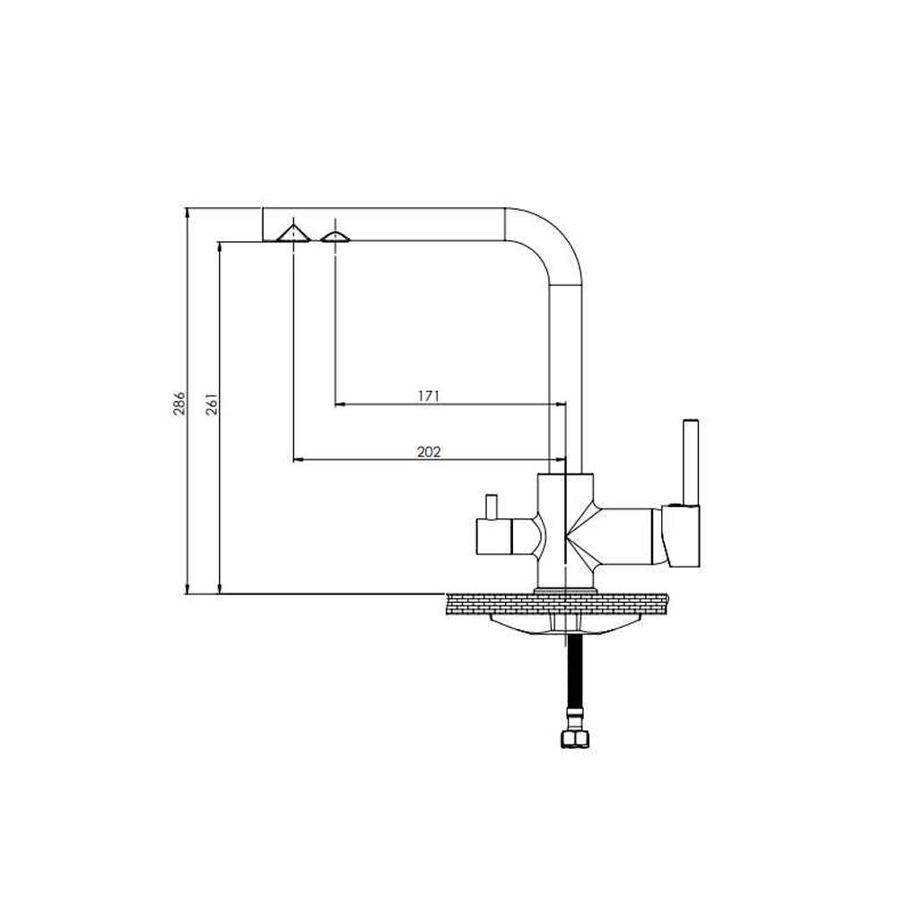 • Arıtma çıkışı çıkış ucu uzunluğu 171 mm Şebeke çıkışı çıkış ucu uzunluğu 202