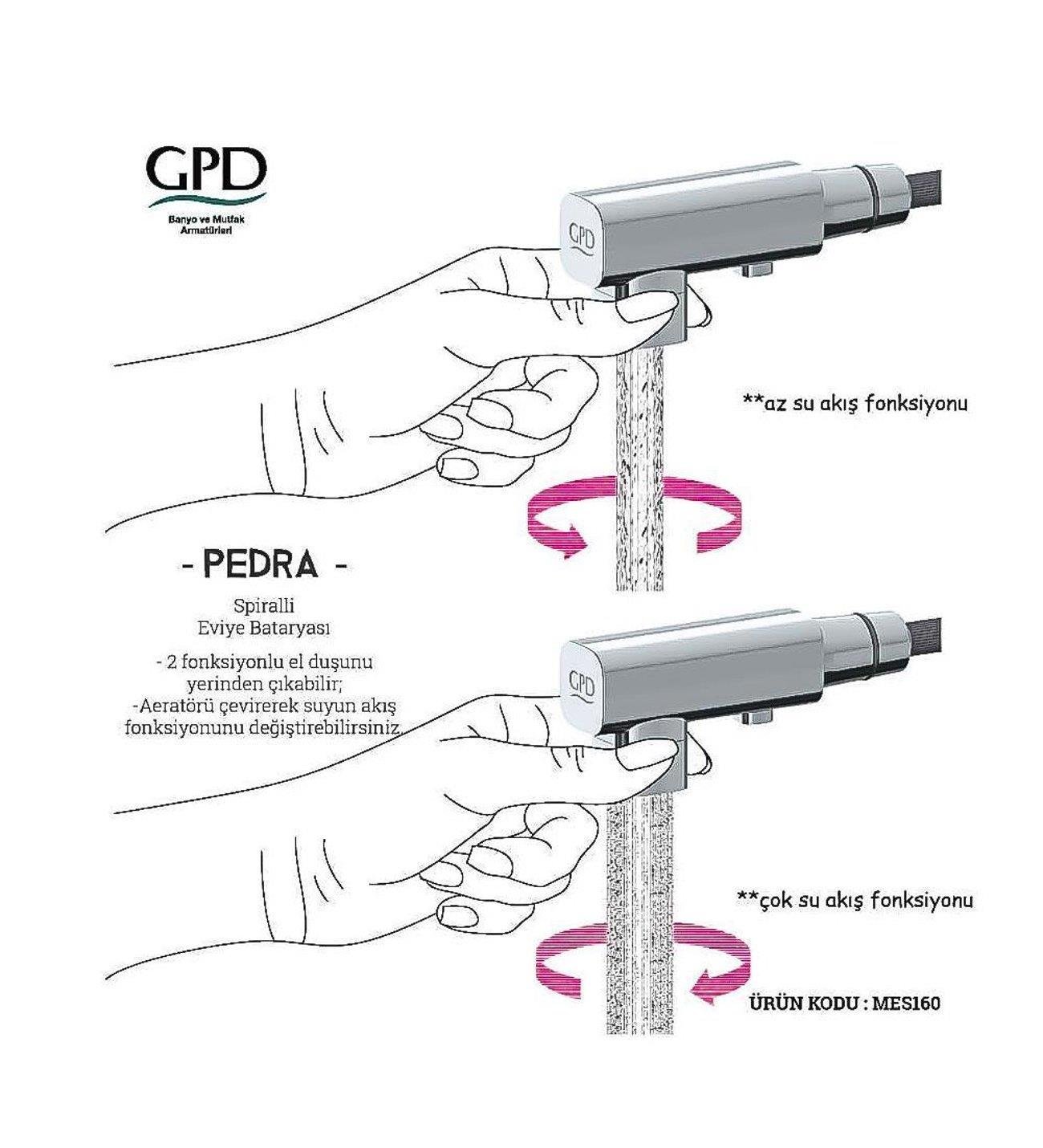 GPD Pedra Spiralli Eviye Bataryası Krom Mes160