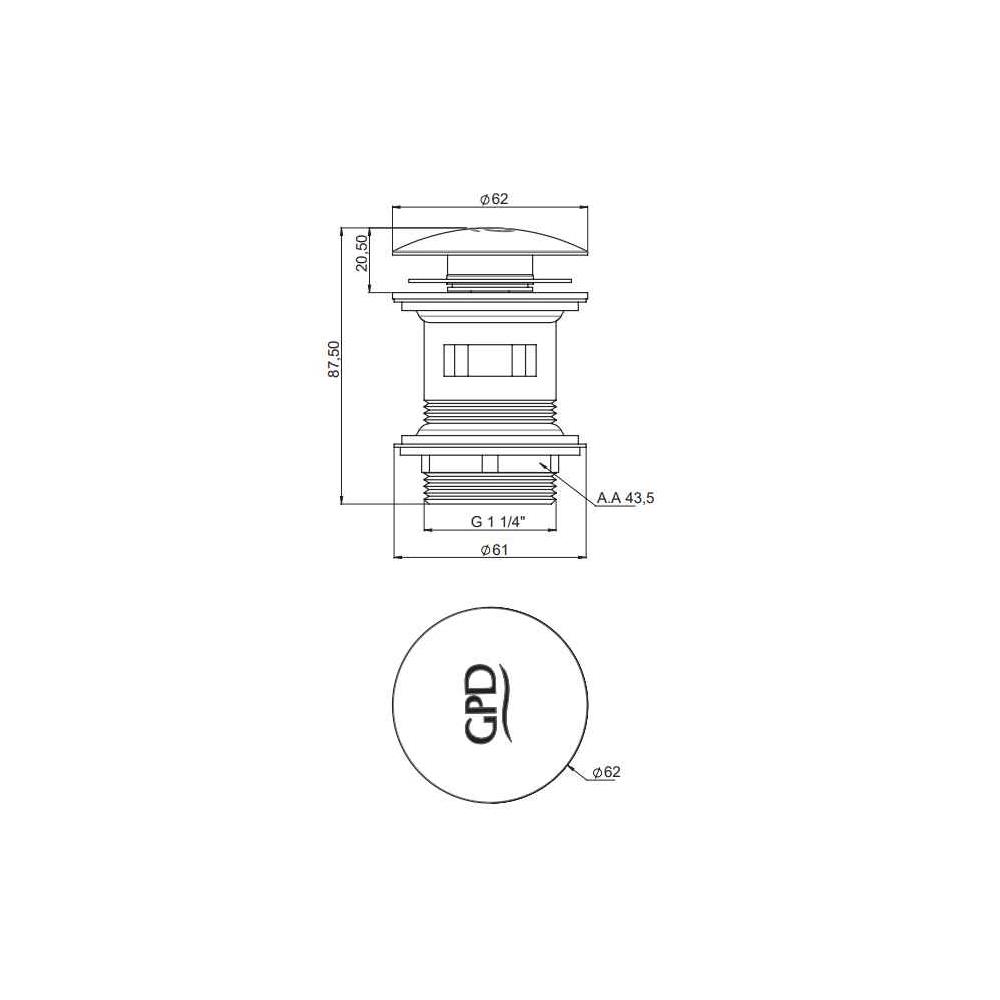 GPD Pop-up Ünitesi Basmalı/taşma Delikli Siyah Pup06-s