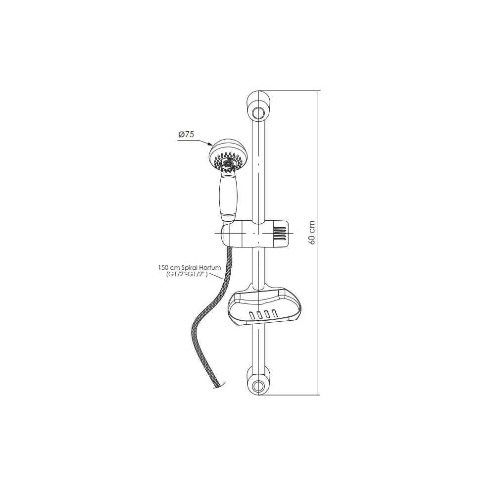 • 150cm spiral hortum (1/2"-1/2")(360° dönerek dolaşmayı engelleyen sistem)