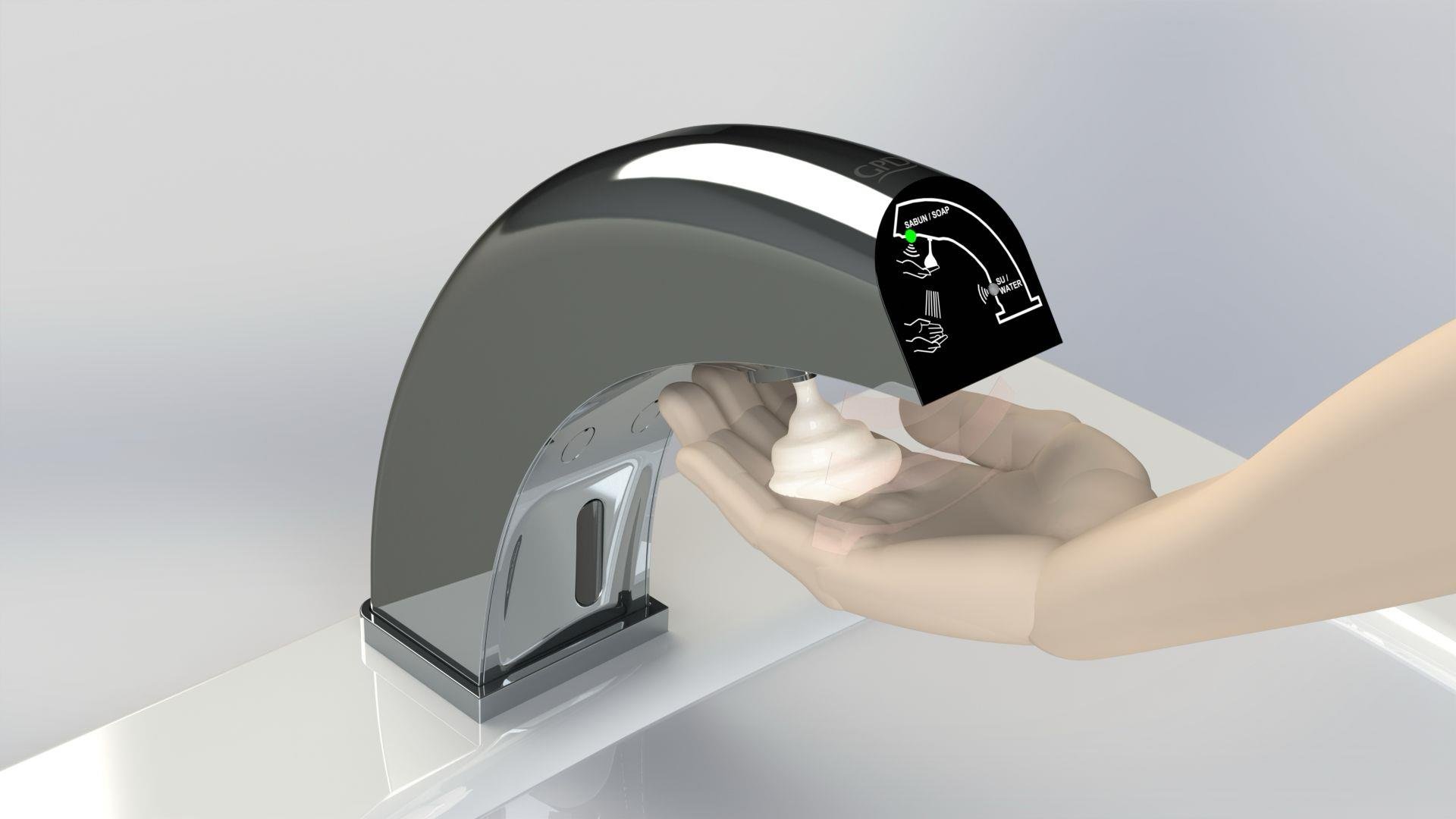 Sabun veya su bölgesi ayrımı olmaksızın armatür altındaki eli ilk gördüğünde sabun verir. Sonra her seferinde su verir.