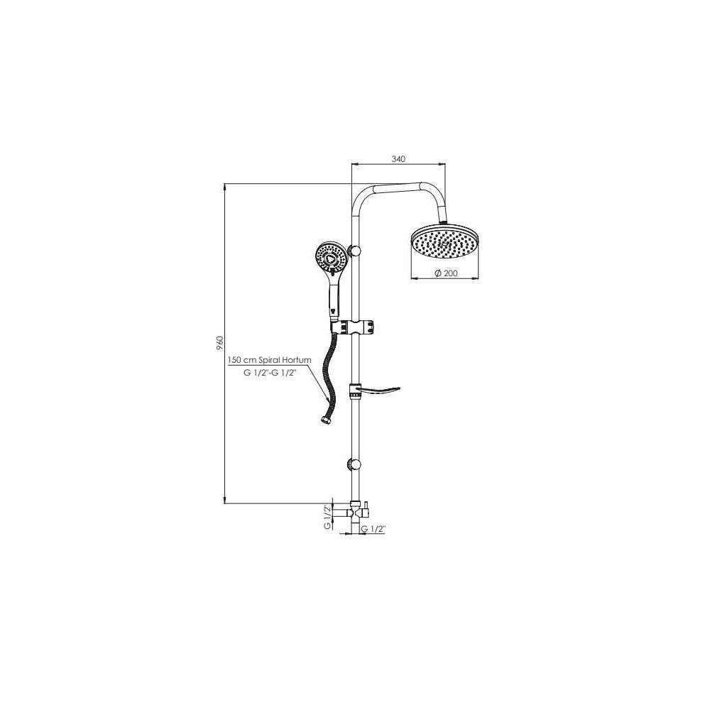 El duşu bağlantısı için 150cm, batarya bağlantısı için ayrıca spiral hortum (360° dönerek dolaşmayı engelleyen sistem)