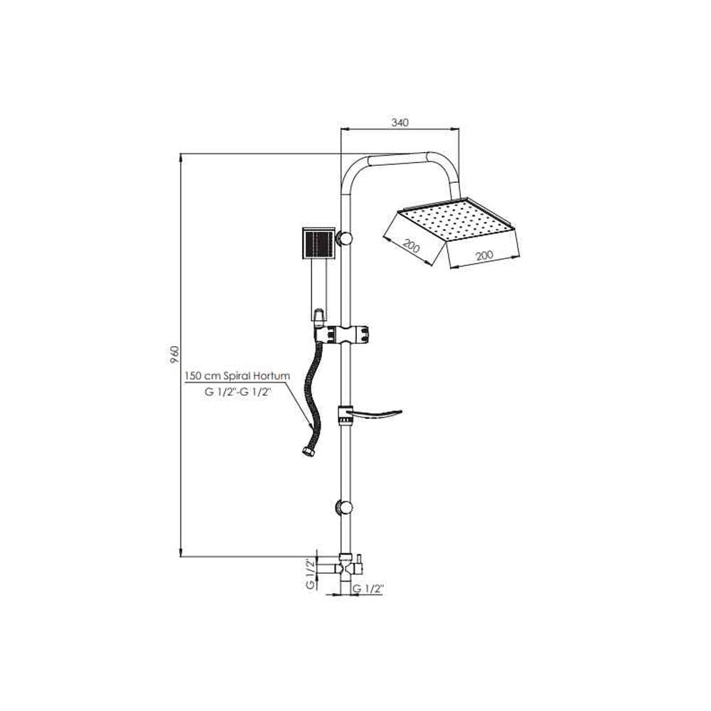 El duşu bağlantısı için 150cm, batarya bağlantısı için ayrıca spiral hortum (360° dönerek dolaşmayı engelleyen sistem)