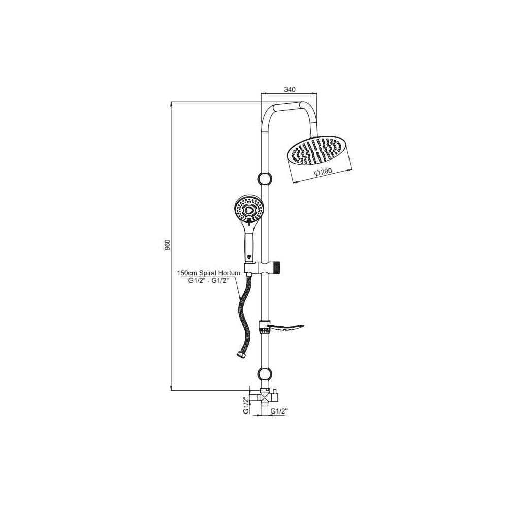 El duşu bağlantısı için 150cm, batarya bağlantısı için ayrıca spiral hortum (360° dönerek dolaşmayı engelleyen sistem)