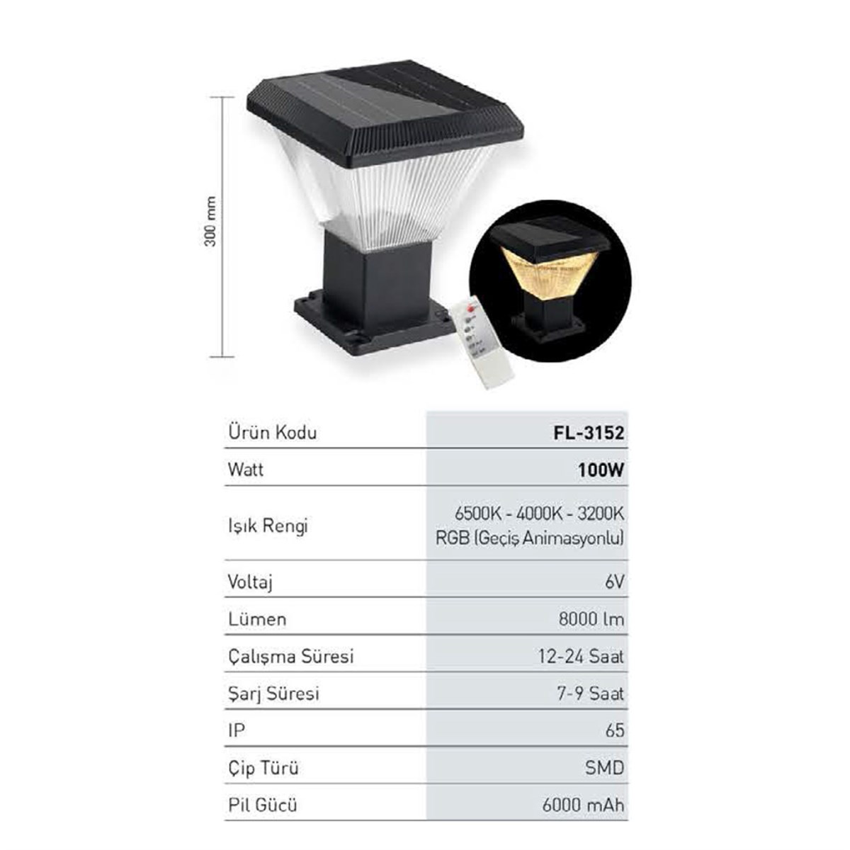 Işık Rengi:rgb,3200k - Günışığı,4000k - Ilık Beyaz,6500k - Beyaz