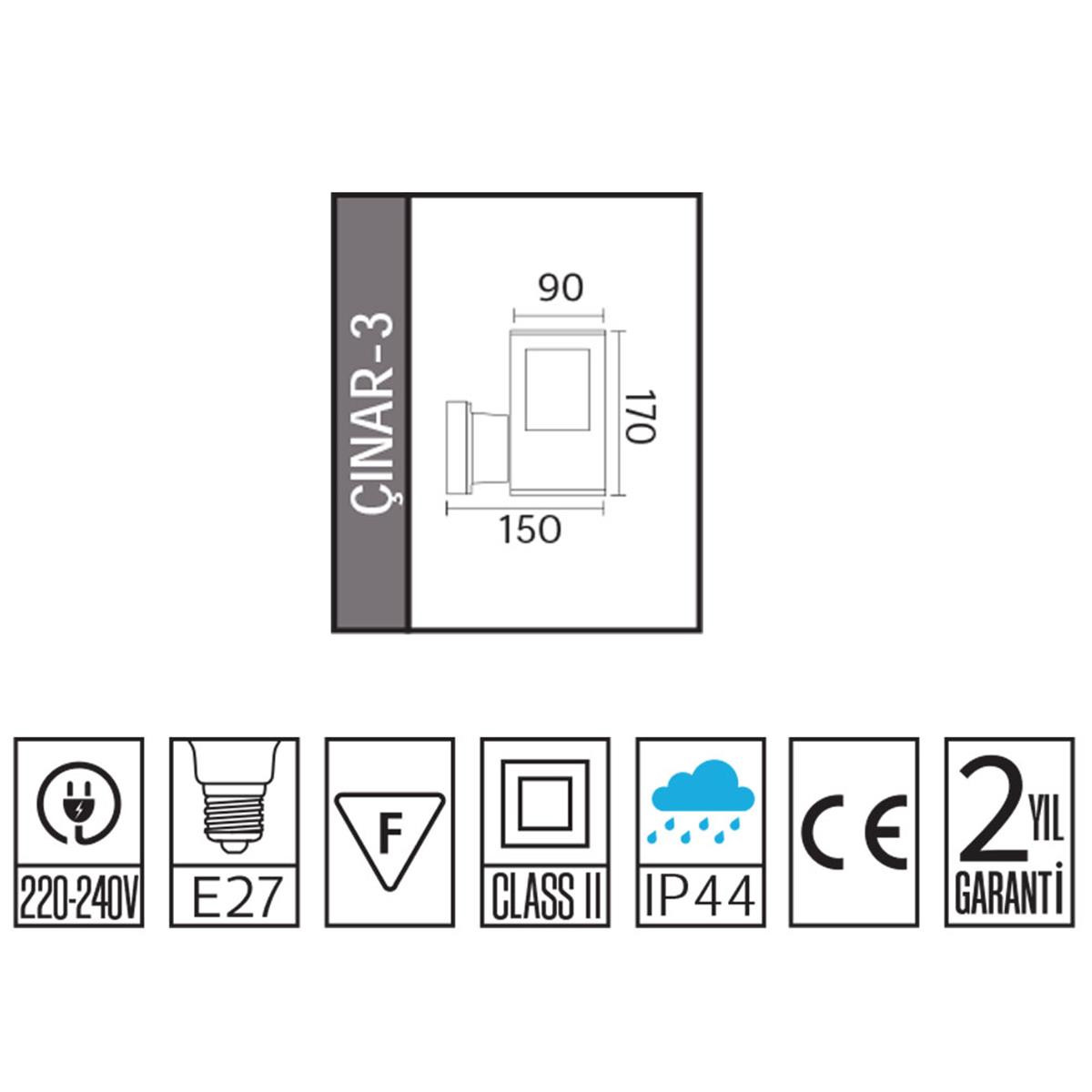 Horoz Çınar-3 Bahçe Aydınlatma Apliği E27 Duylu
