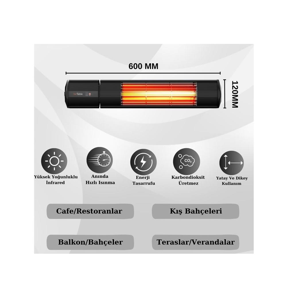 Hottable Classic Plus 2000 W uzaktan Kumandalı Duvar Tipi İnfrared Dış Mekan Isıtıcı