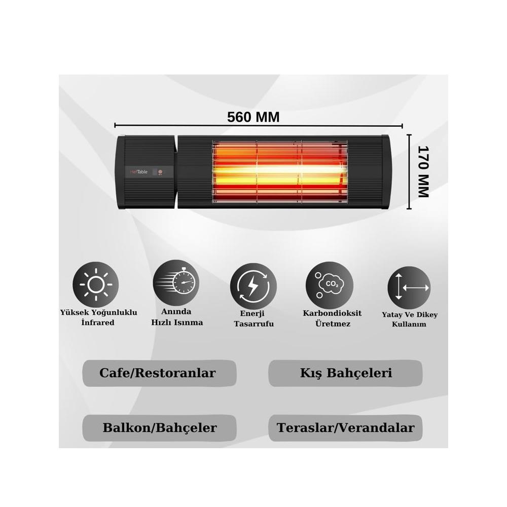 Hottable Supreme Plus 2000 W Uzaktan Kumandalı Duvar Tipi İnfrared Dış Mekan Isıtıcı