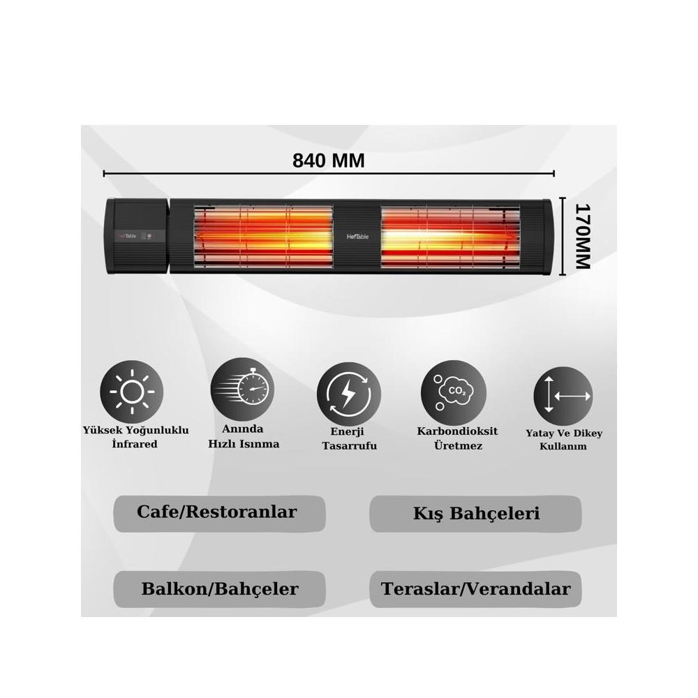 Hottable Supreme Plus 3000 W Uzaktan Kumandalı Duvar Tipi İnfrared Dış Mekan Isıtıcı