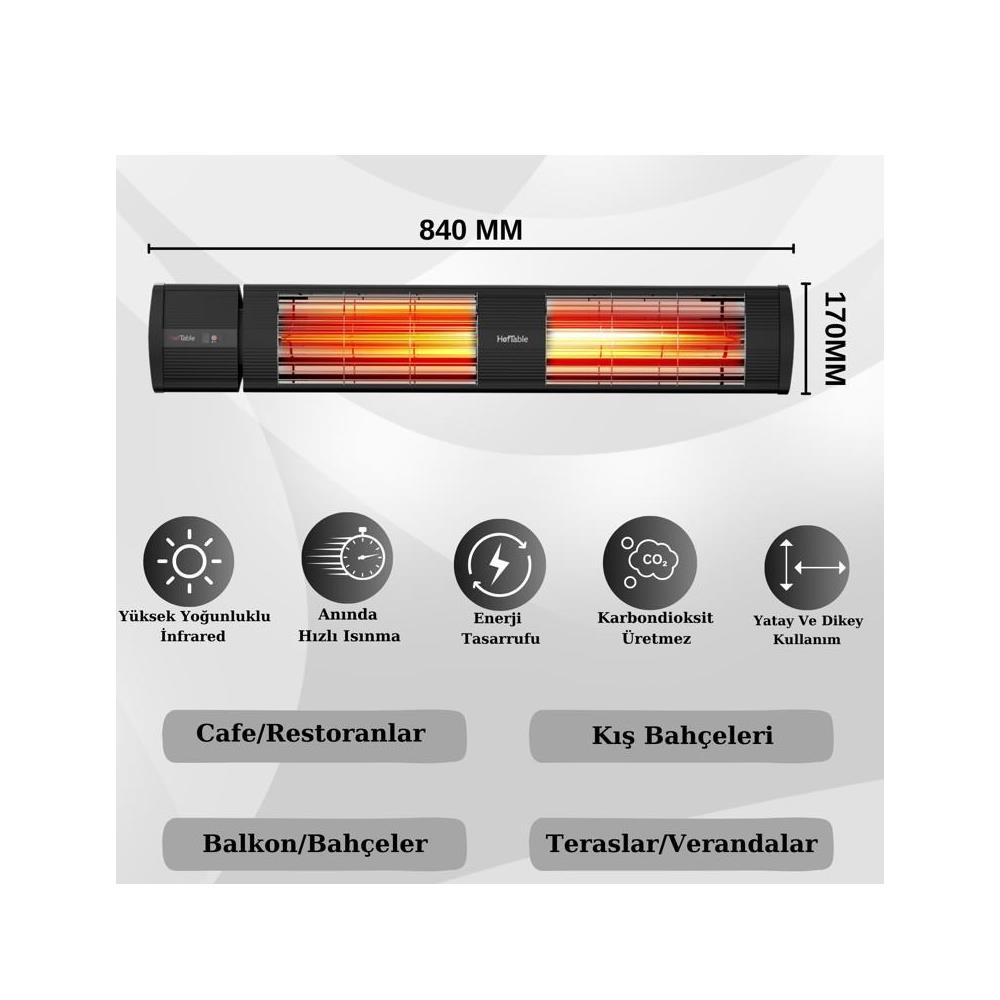 Hottable Supreme Plus 4000 W Uzaktan Kumandalı Duvar Tipi İnfrared Dış Mekan Isıtıcı