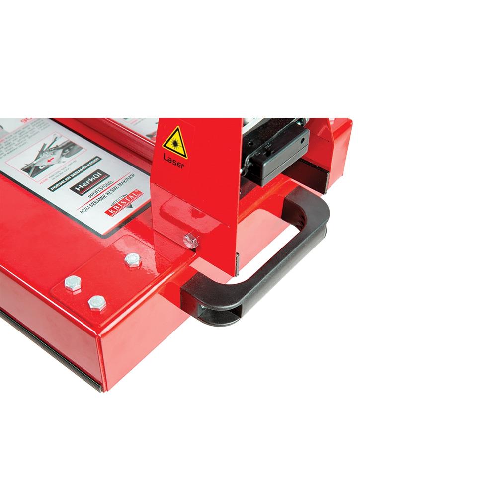 Seramiğin dayandığı özel tasarlanmış gönye sayesinde, istenilen açıda kesim yapılabilir.