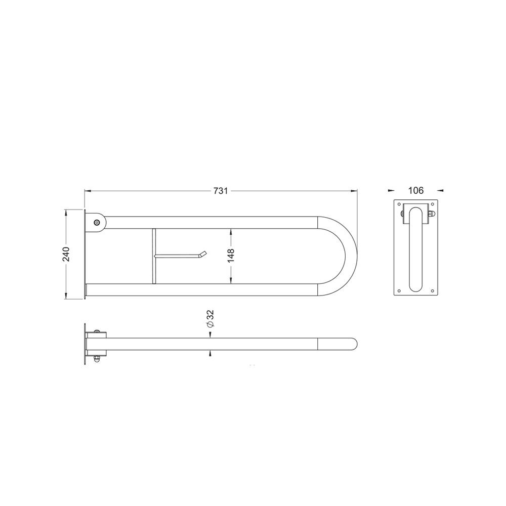 Maxiflow Mafsallı - Hareketli Wc Kağıtlıklı Tutunma Barı Beyaz Ø32 28810