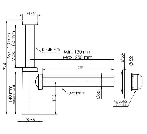 Paket içeriğindeki adaptör conta eksiksiz montaj sağlar.