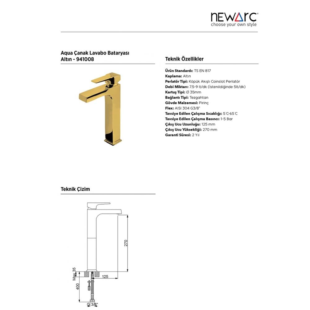 Newarc Aqua Altın Çanak Tipi Lavabo Bataryası 941008