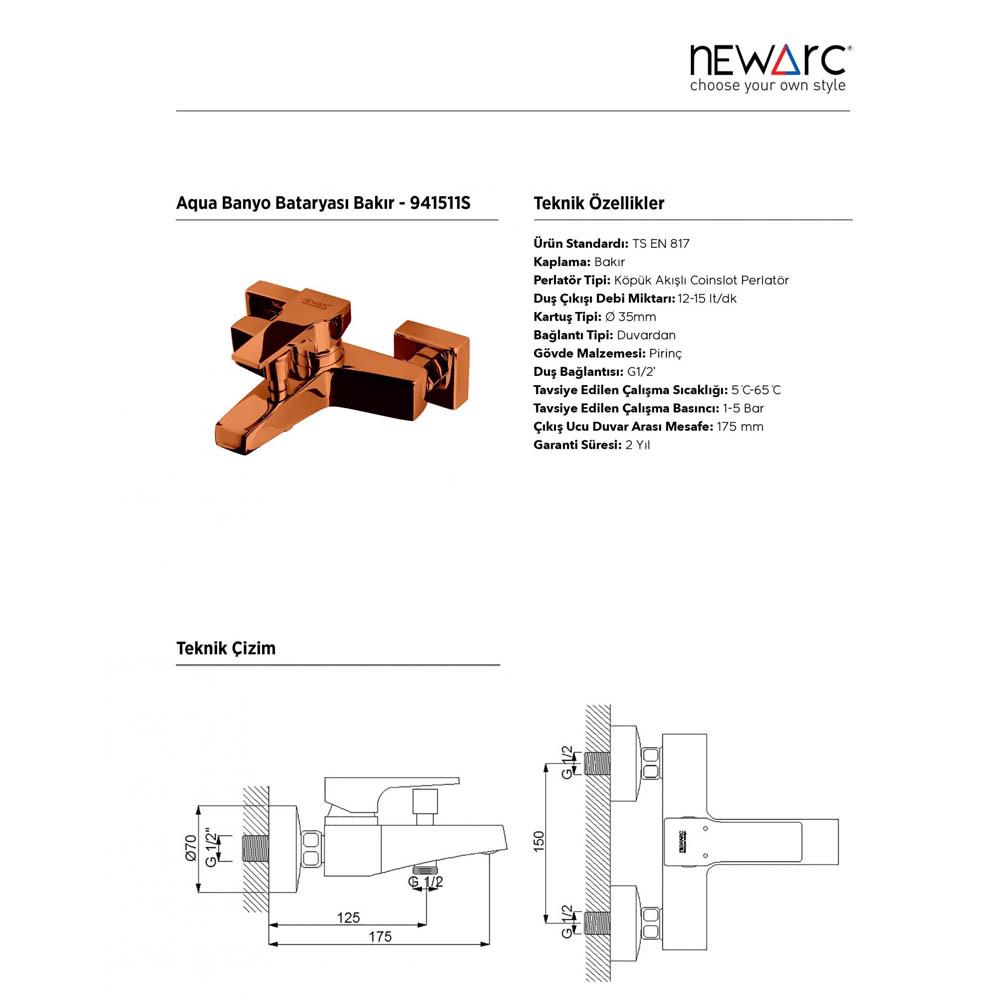 Newarc Aqua Banyo Bataryası Parlak Bakır 941511S