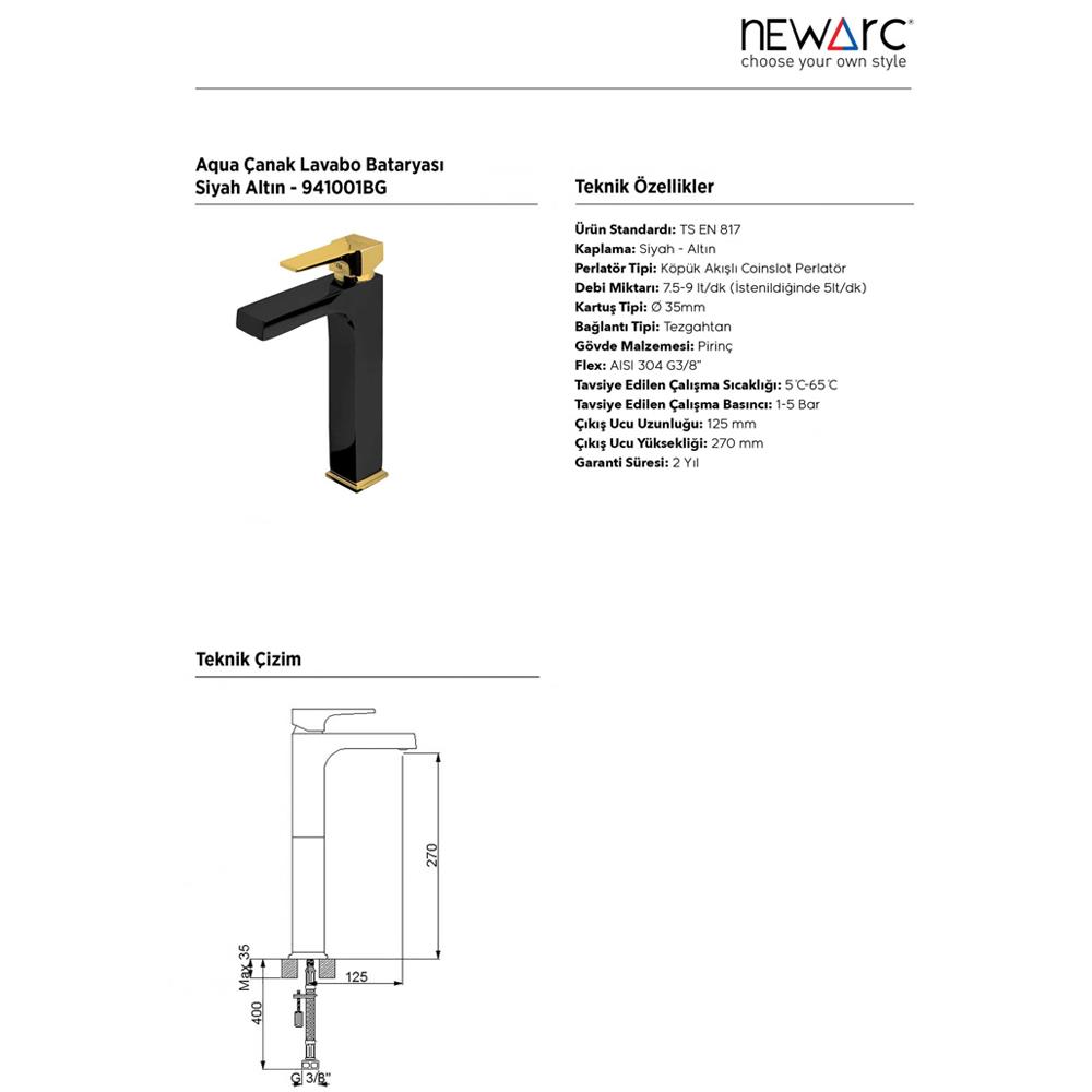 Aqua Çanak Tipi Lavabo Bataryası Siyah / Altın