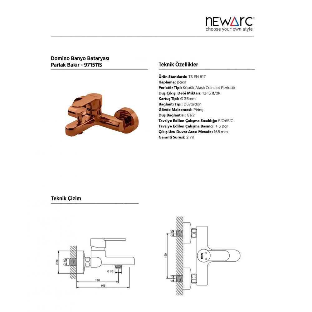 Newarc Domino Banyo Bataryası Parlak Bakır 971511S
