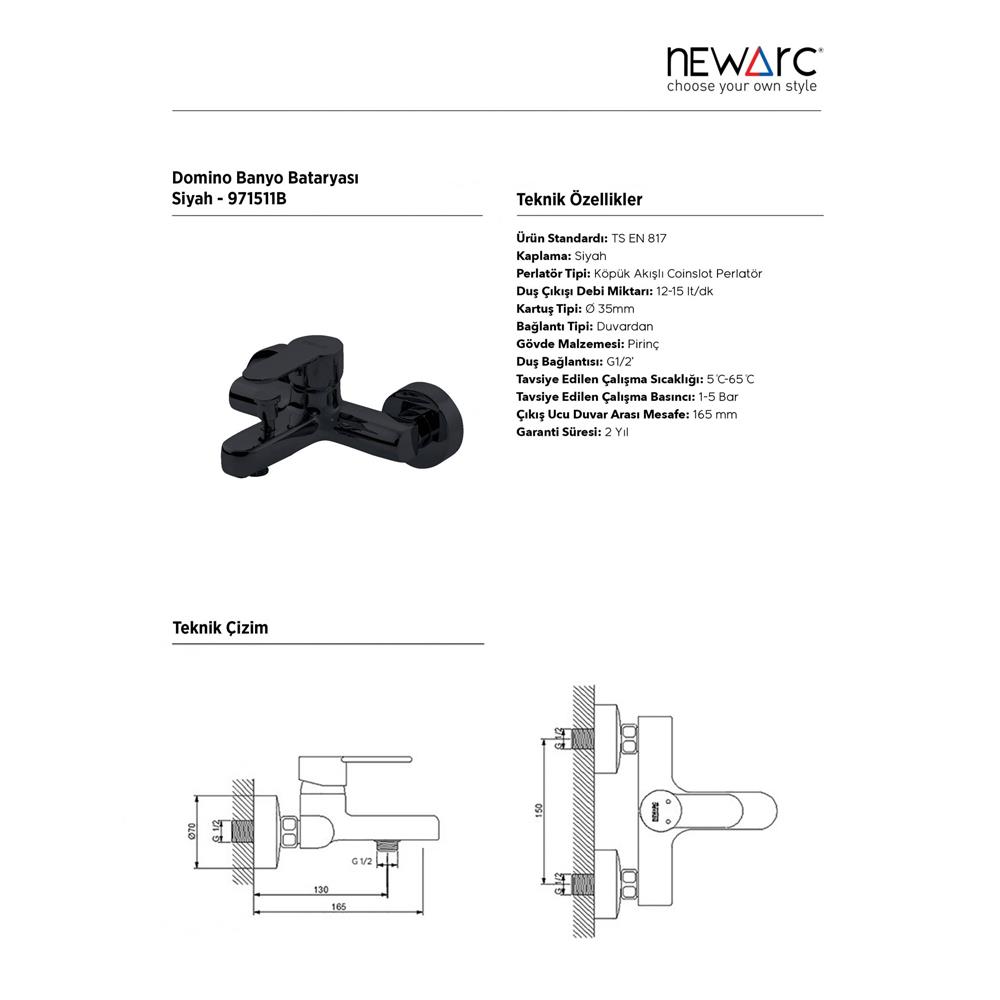 Newarc Domino Banyo Bataryası Siyah 971511B