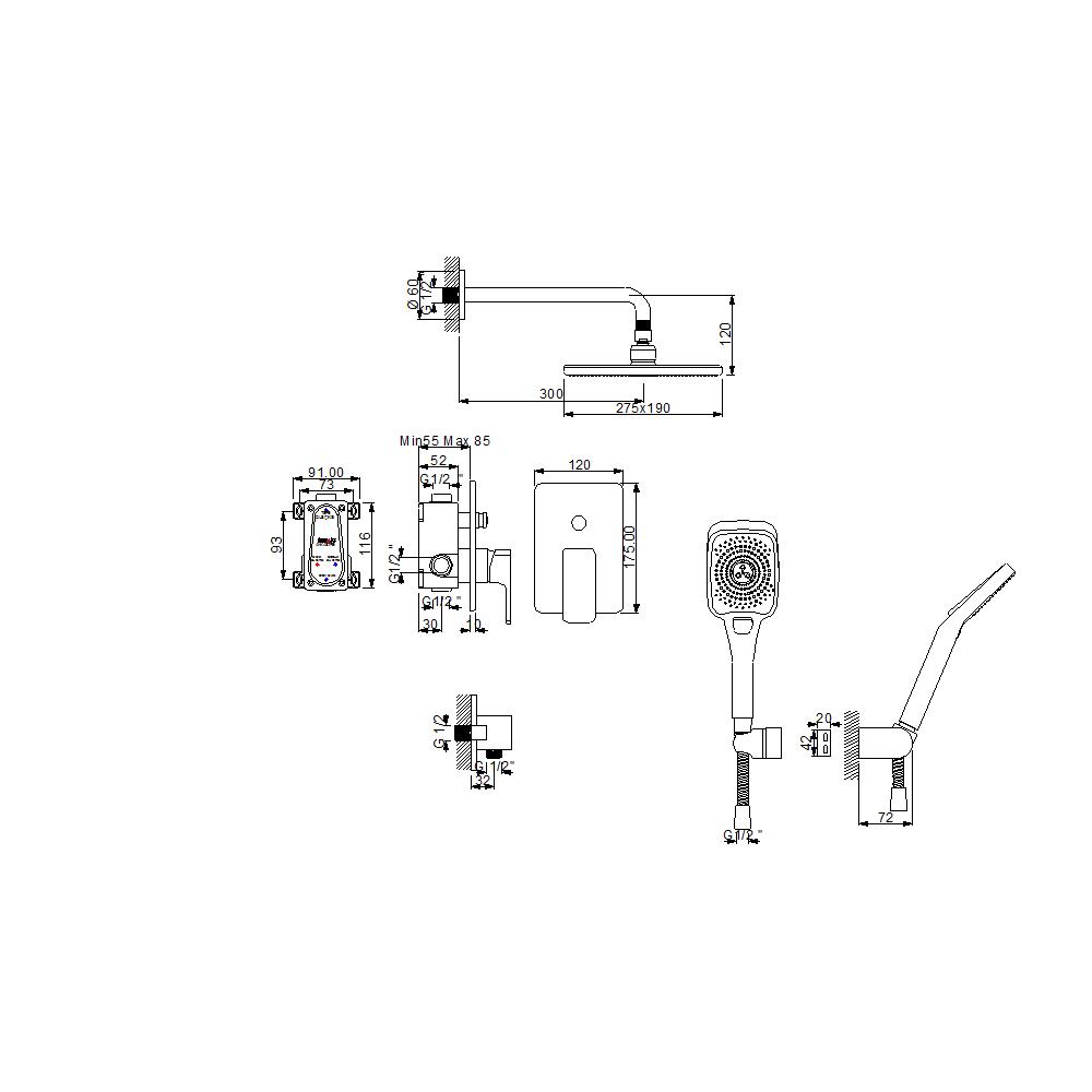 Tepe duşu ve el duşu bağlantı çıkışları standart ölçülerde olduğu için farklı duş başlıklarıyla uyumludur.