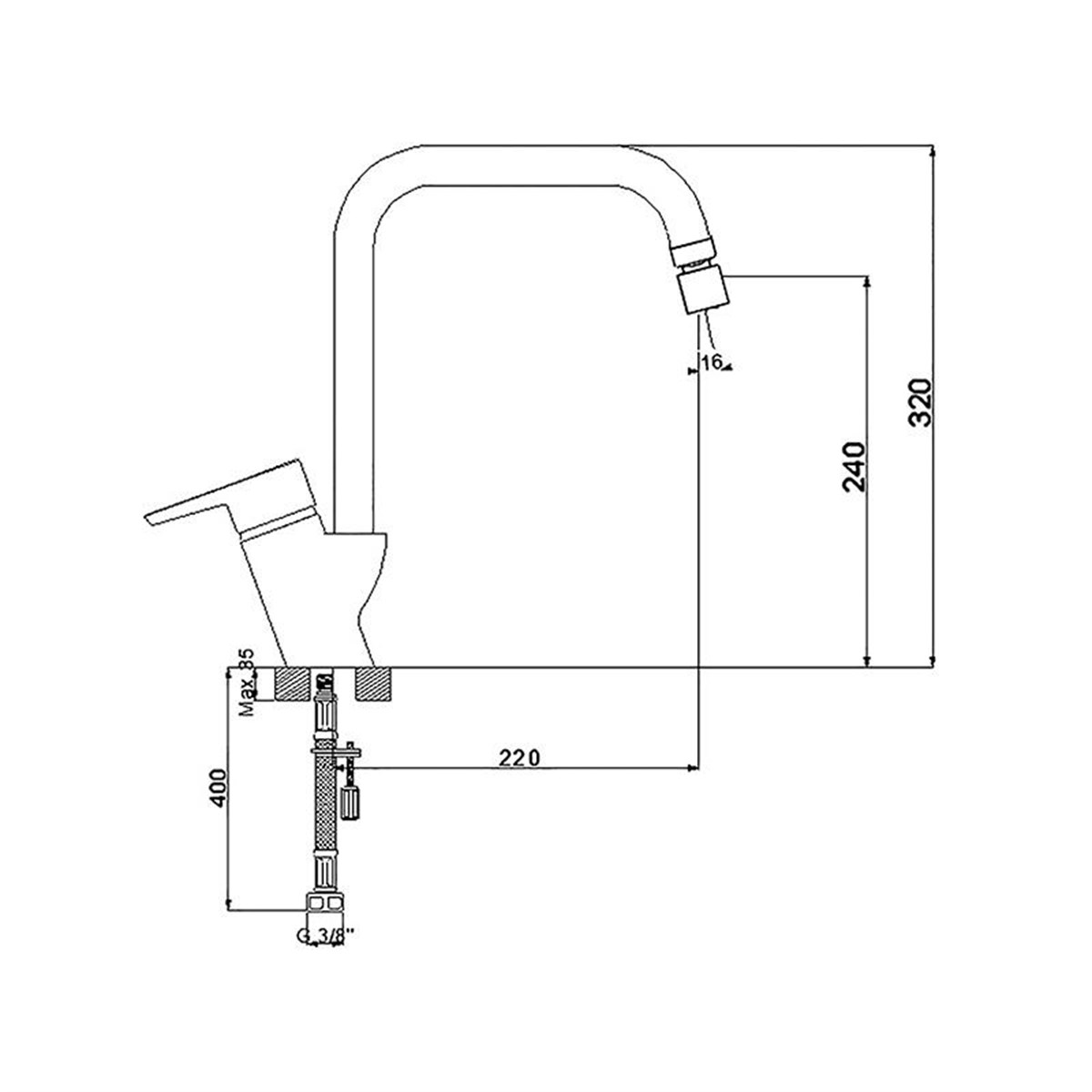 Newarc Energy Döner Perlatörlü Eviye Bataryası Köşe Borulu 891881D