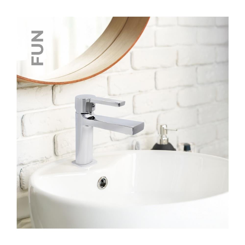 Newarc Fun Lavabo Bataryası Krom (831521), modern ve şık tasarımıyla banyonuza zarif bir dokunuş katarken, fonksiyonel kullanım ve dayanıklı malzeme ile uzun süreli